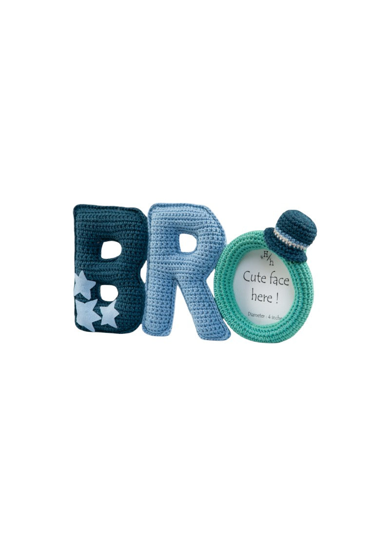 "Celebrate the special bond with your brother with this quirky and adorable BRO-shaped crochet photo frame!