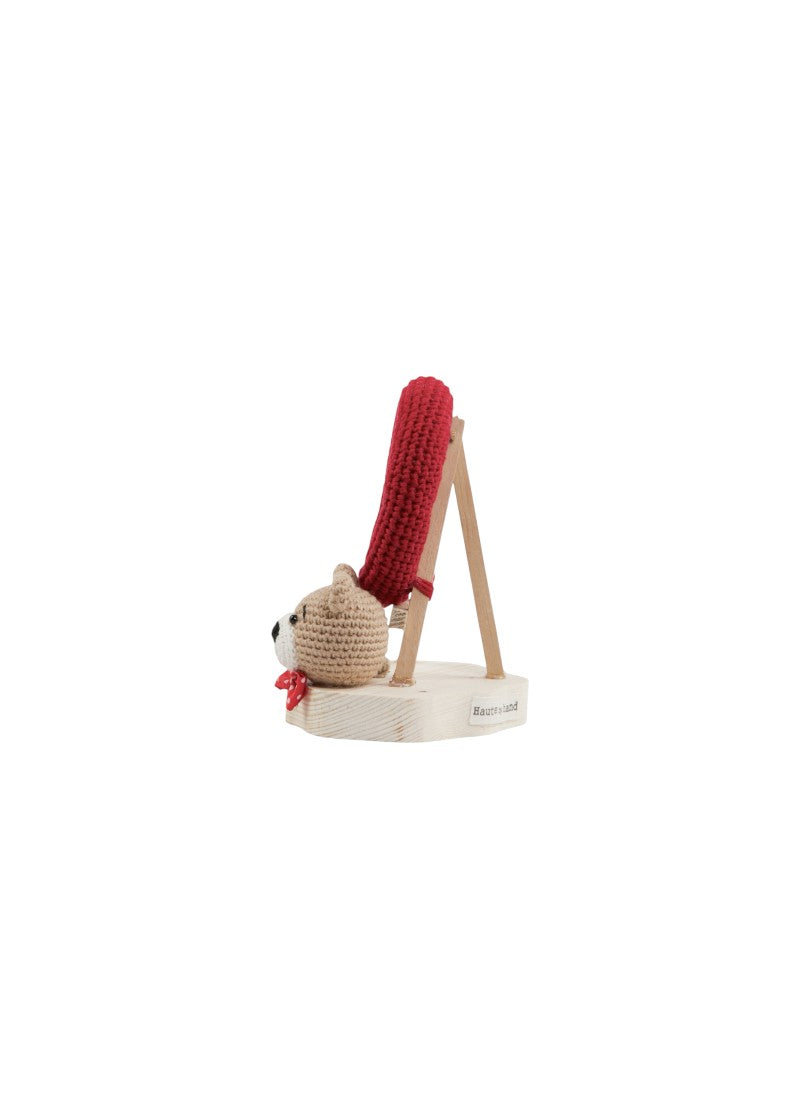 This adorable crochet photo frame features a deep red border and an irresistibly cute teddy bear with a red polka-dot bow tie. Carefully handcrafted, it holds a 3-inch photo, making it the perfect way to showcase your favorite little face.
