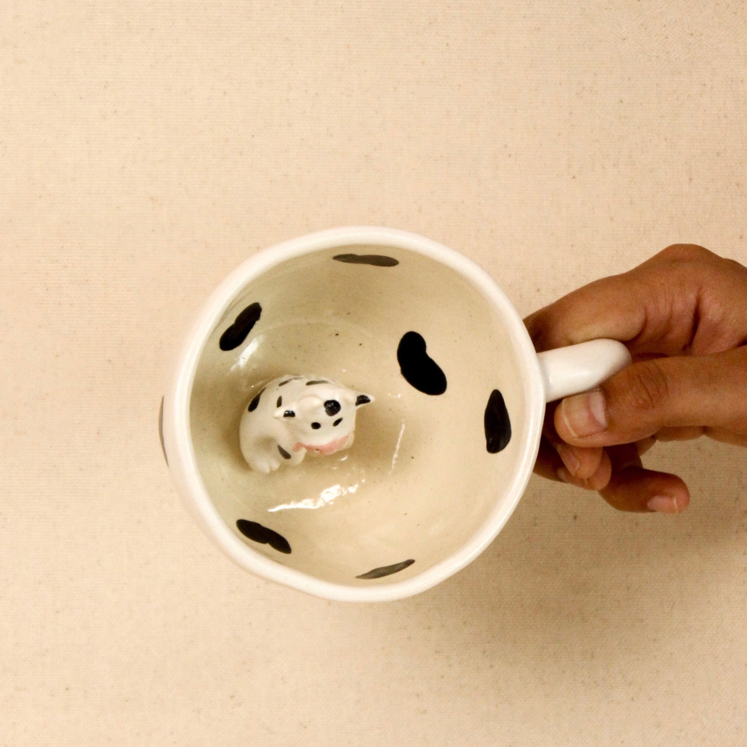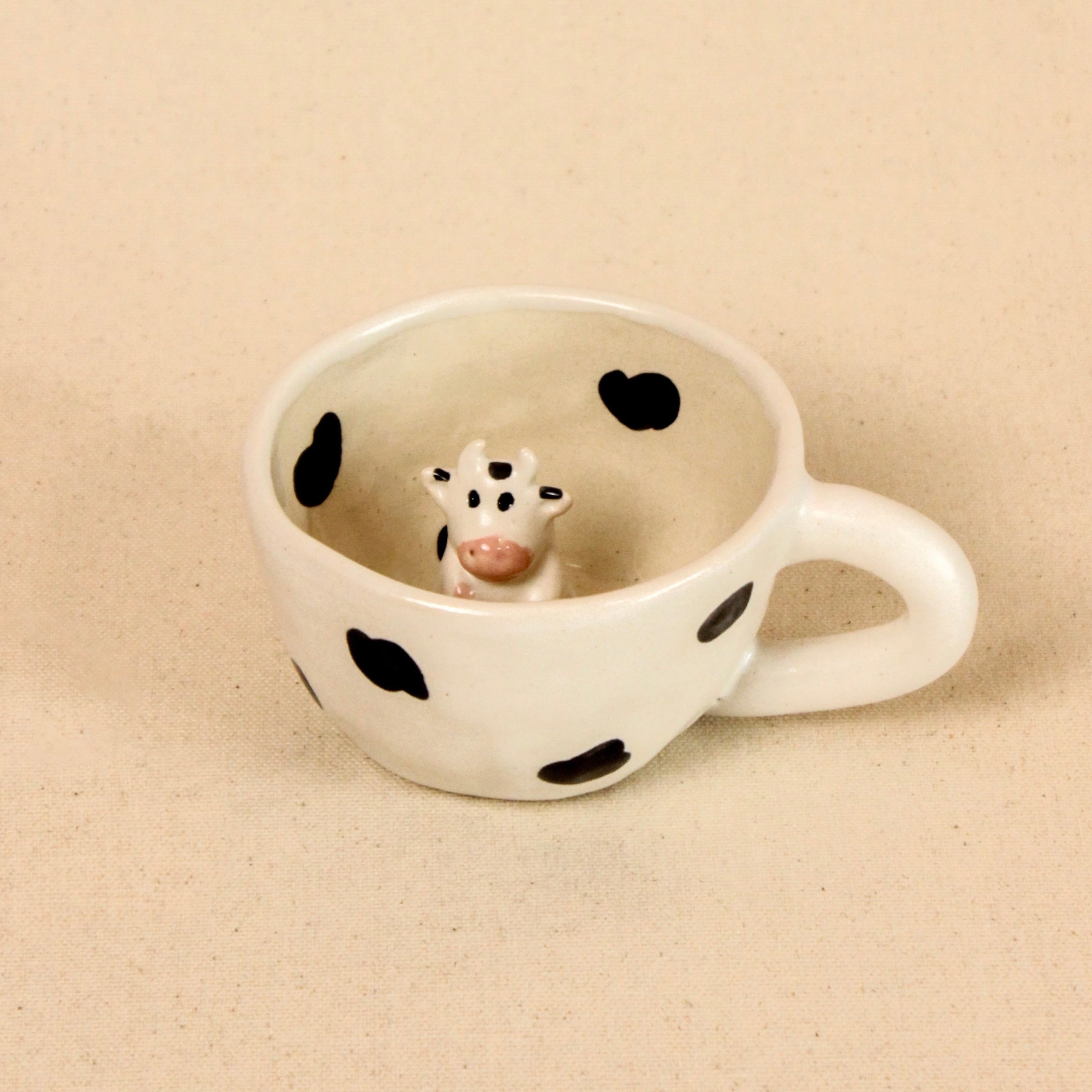 Indulge in the cuteness overload with our Handmade Ceramic Cow Mug – a true testament to artistic brilliance and delightful whimsy. Imagine sipping your favorite brew while being greeted by the sight of an adorable cow, sitting cozily inside the mug. Crafted meticulously by skilled hands, this ceramic masterpiece not only brings a smile to your face but also adds a touch of farmhouse charm to your everyday routine.