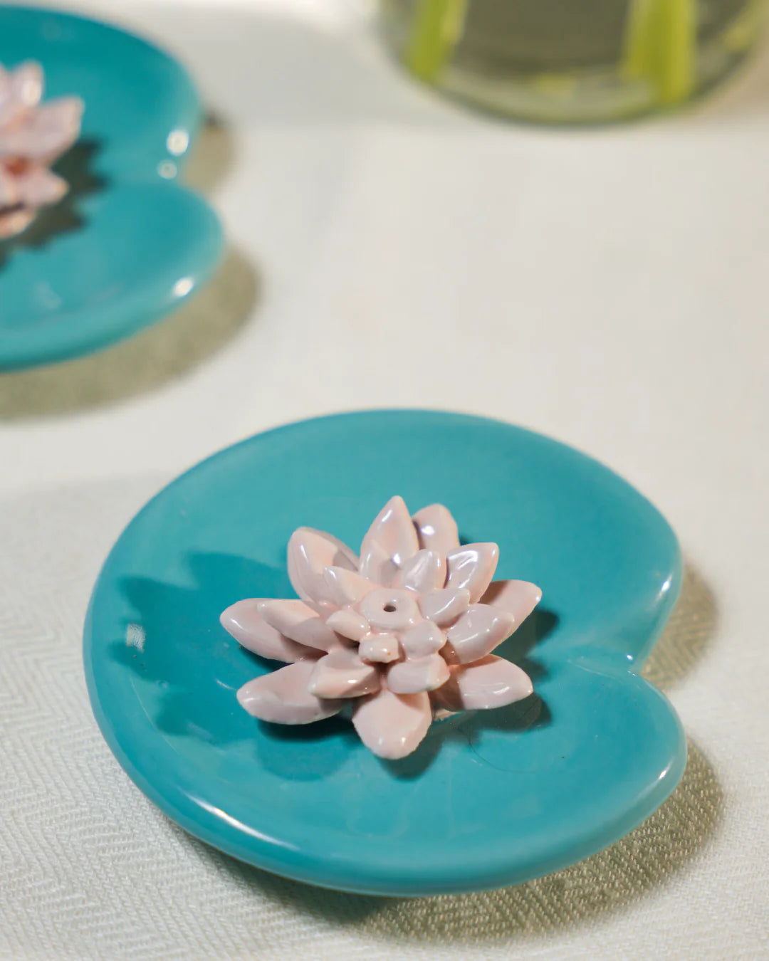 Symbolic Design: Lily flower on leaf incense stick holder symbolizing purity and enlightenment with a touch of nature.