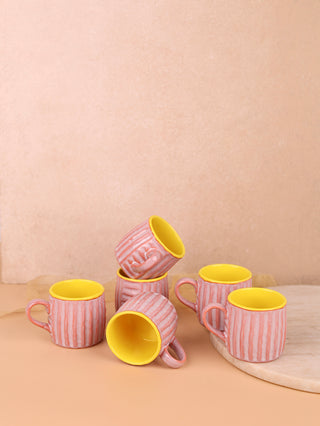 Mehmaan Tea Cups | Set of 6 | Pink-Yellow