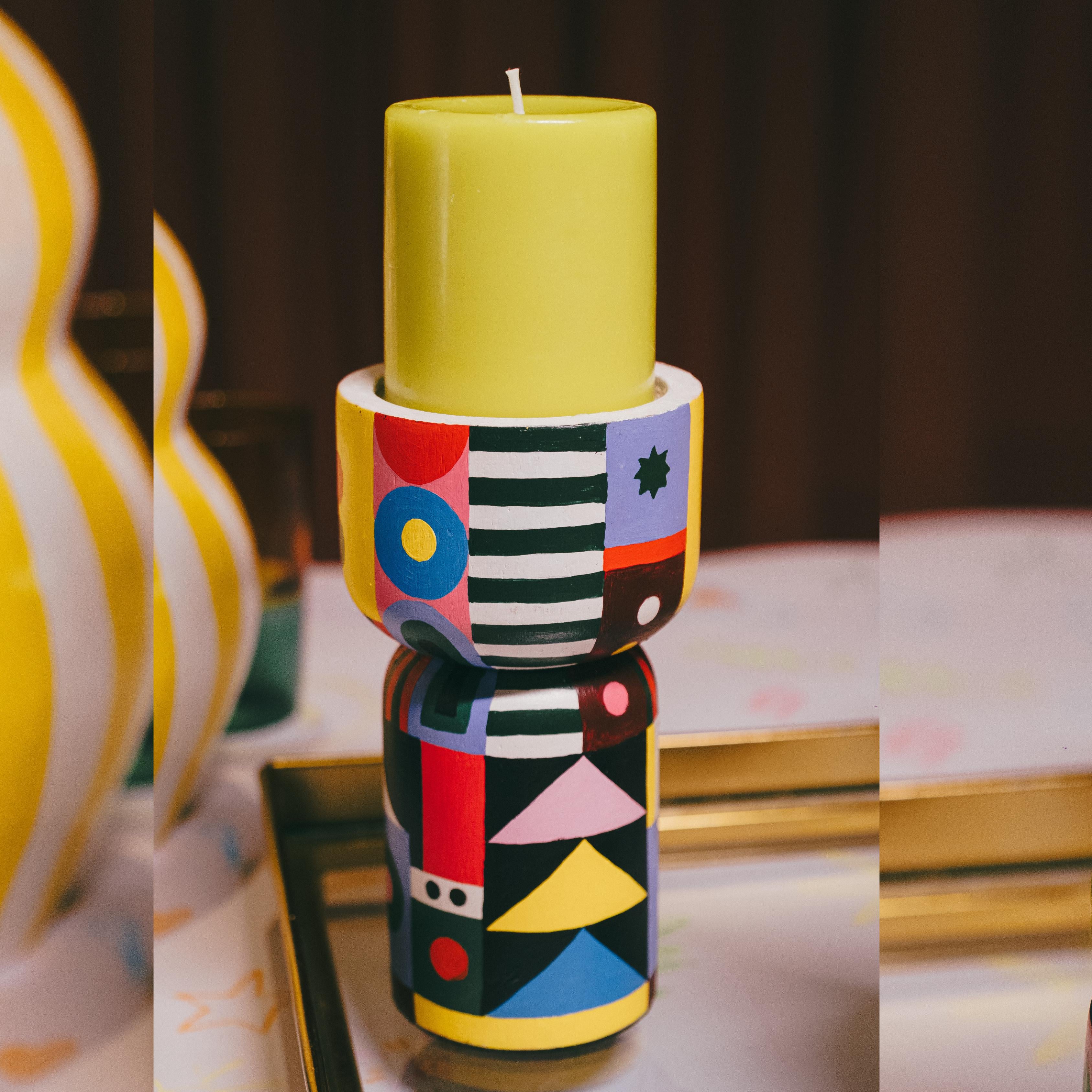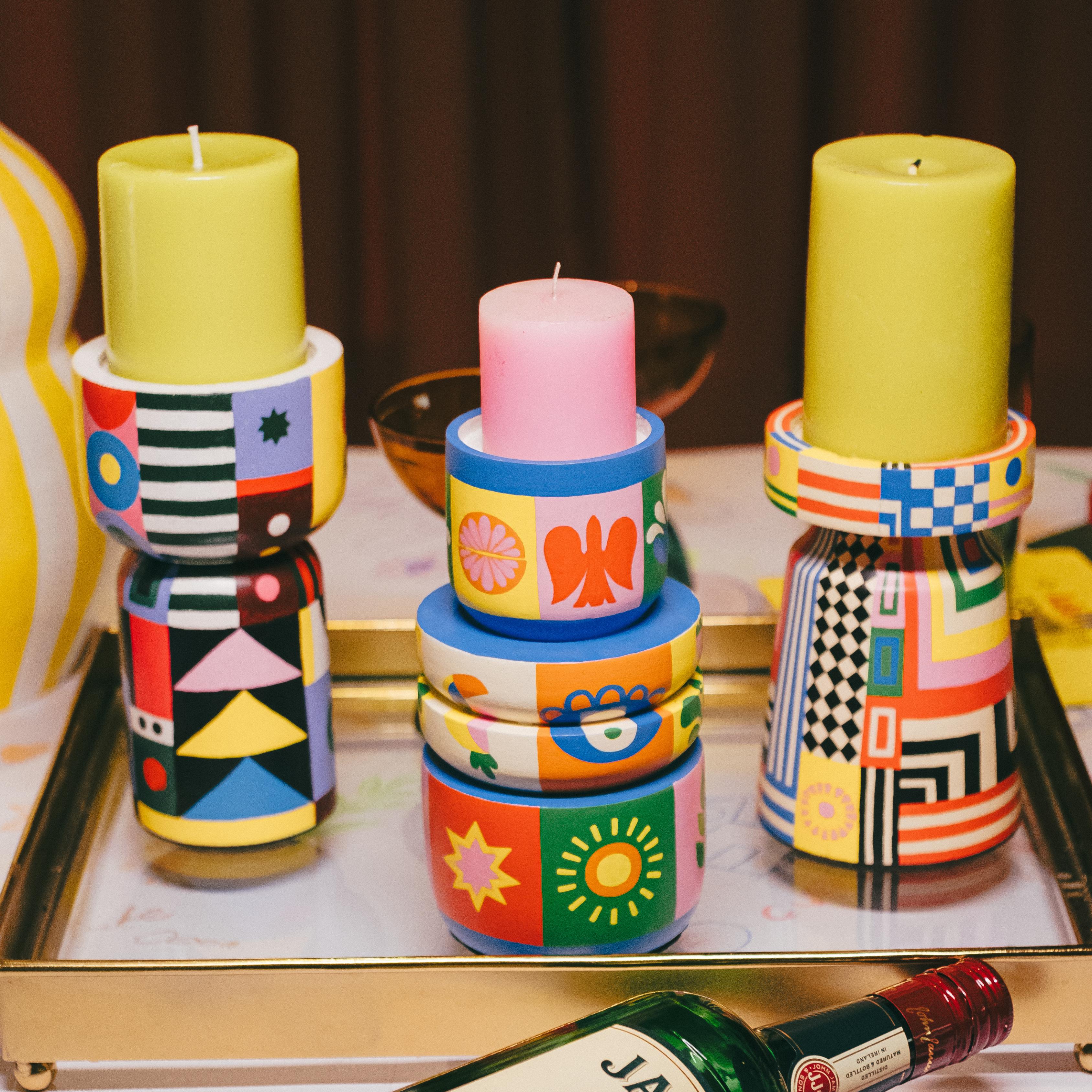 A celebration of vibrant hues and artistic storytelling, this set of three candle stands—Boho Fusion, Color Pop Delight, and Botanic Bliss—brings together playful patterns, contemporary design, and handcrafted elegance. Whether you love dopamine decor, bold aesthetics, or a curated luxe vibe, this set is perfect for those who appreciate art in every form, A masterpiece of craftsmanship. Each candle stand tells a different story.