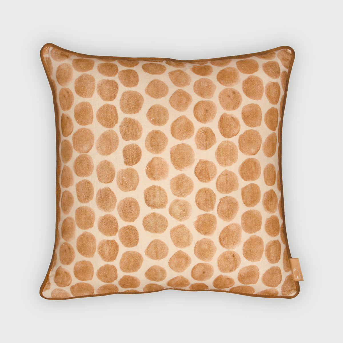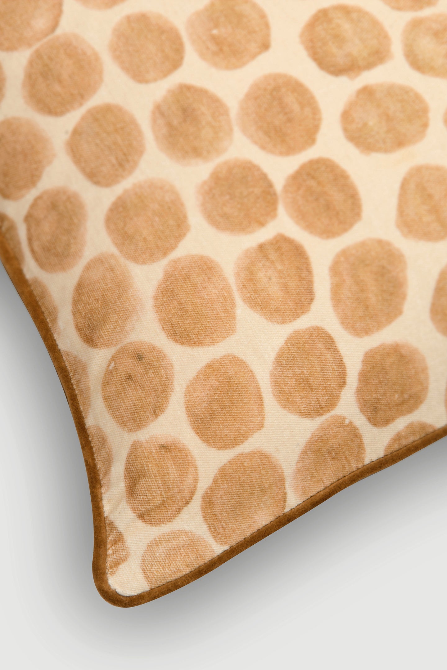 Our Polka Dot Cushion Cover is designed to add character and warmth to any space. Hand painted by Ramita, the design features an elegant polka dot pattern in earthy tones. Printed on luxurious microvelvet, this cushion cover brings an artistic flair to your space.