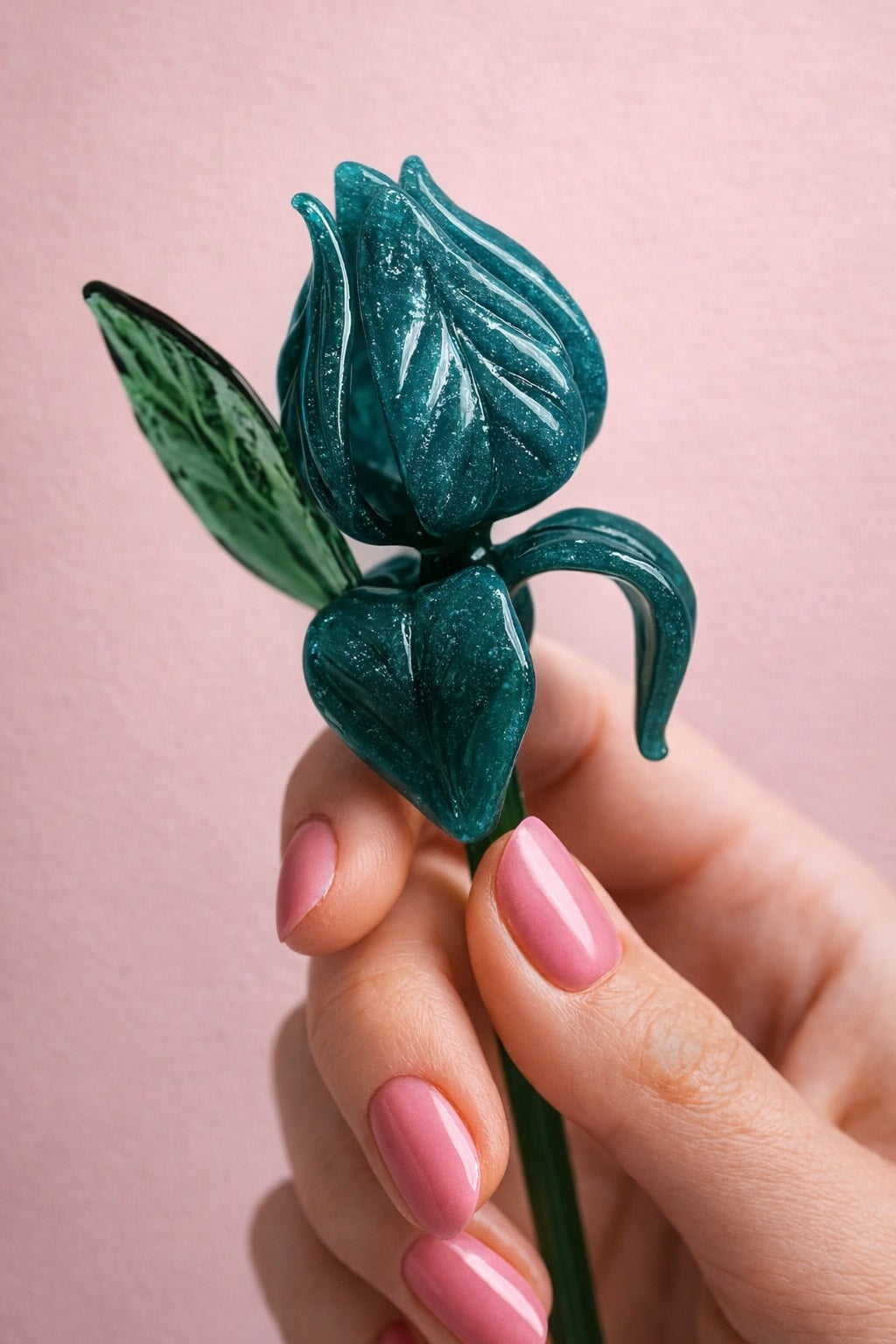 Measuring 23 cm to 25 cm in height . These handblown glass flowers are exquisite botanical creations,Each delicate petal and stem is meticulously shaped and colored, resulting in lifelike, vibrant blooms. making it a perfect luxe addition to your living space.