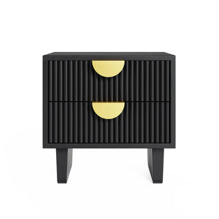 Roswell Composite Marble Side Table in Dark Walnut Finish