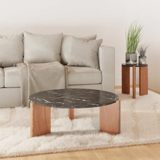 Roswell Composite Marble Coffee Table in Dark Walnut Finish