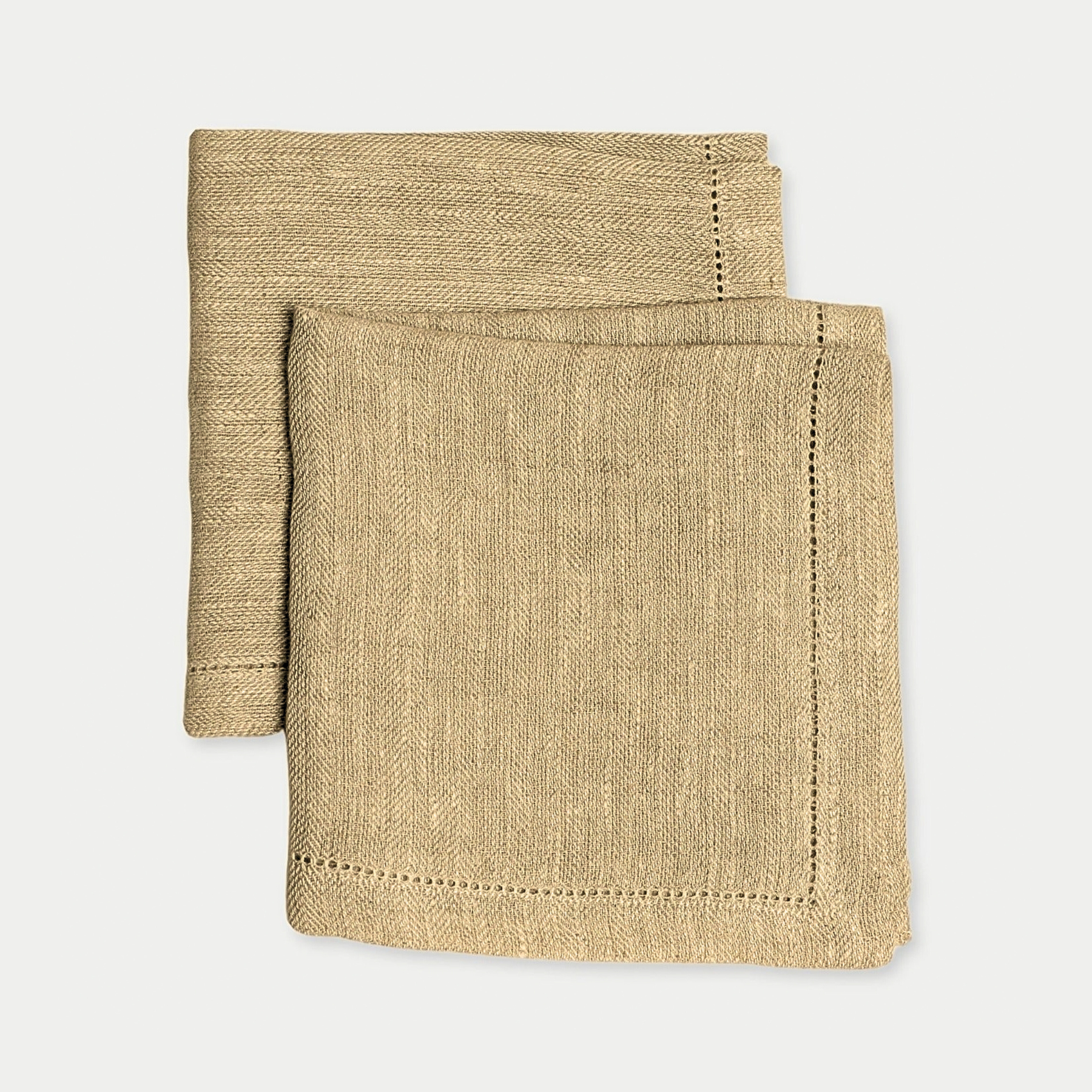 Our Herringbone Sand Table Napkins are made from linen in a classic chevron style V-shaped herringbone weaving pattern, lending the design a unique texture and depth.