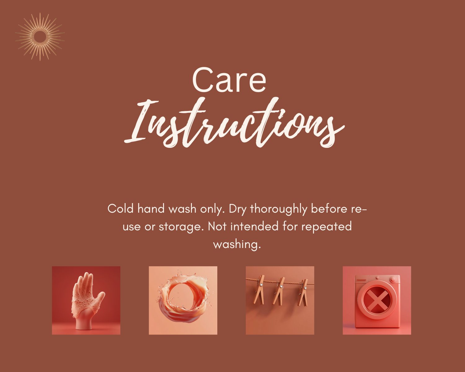 - Not intended for repeated washing.