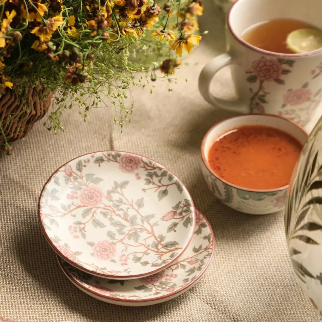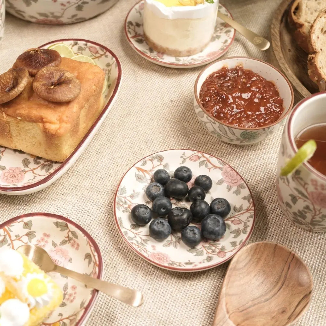 Mediterranean charm brought to you in our peony collection . Imagine waking up to a calm and soothing breakfast setting, where the simple beauty of a floral peony-inspired stoneware tea plate elevates your everyday routine. This isn't just breakfast; it's a moment of effortless serenity.