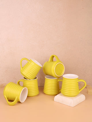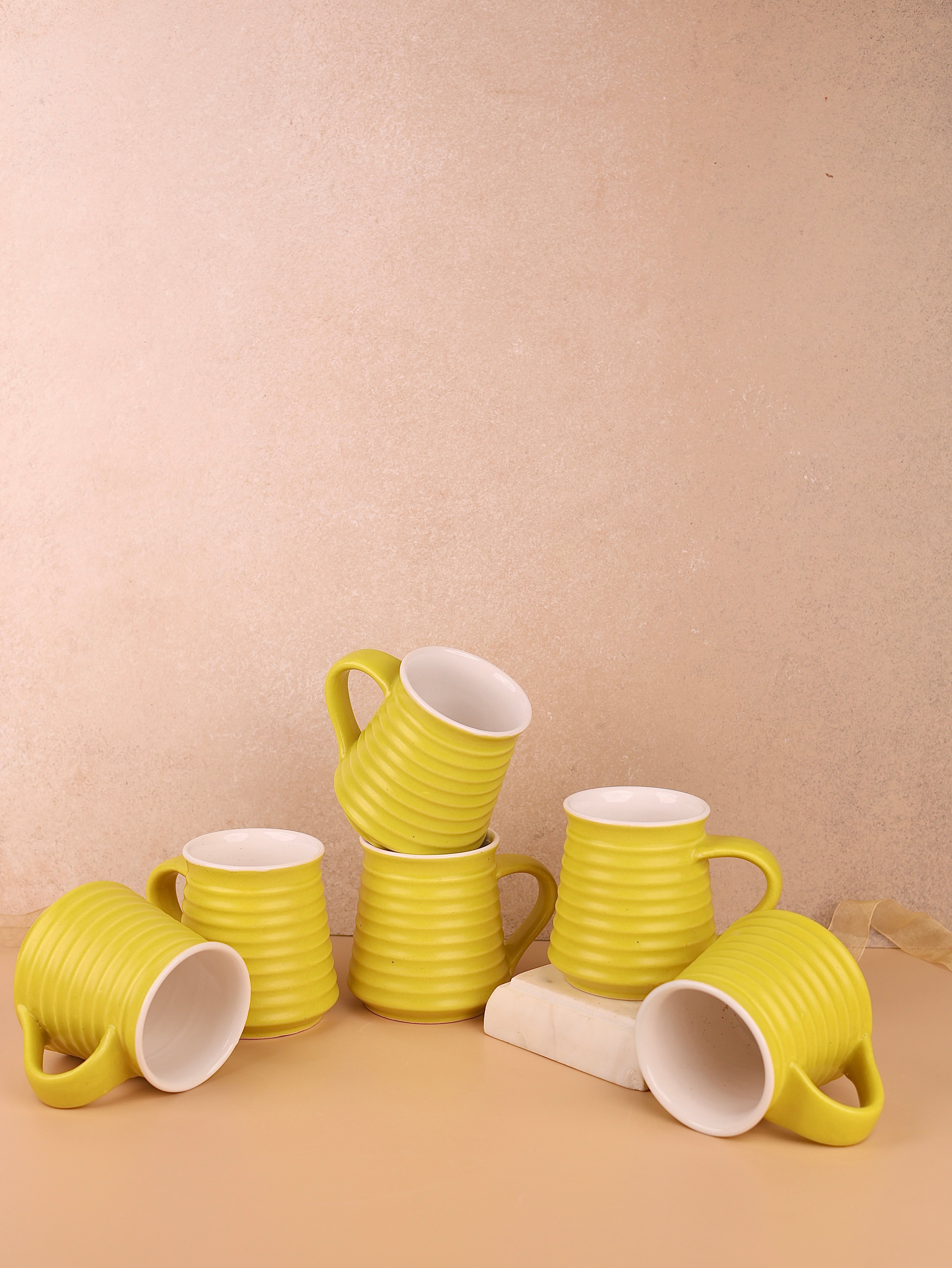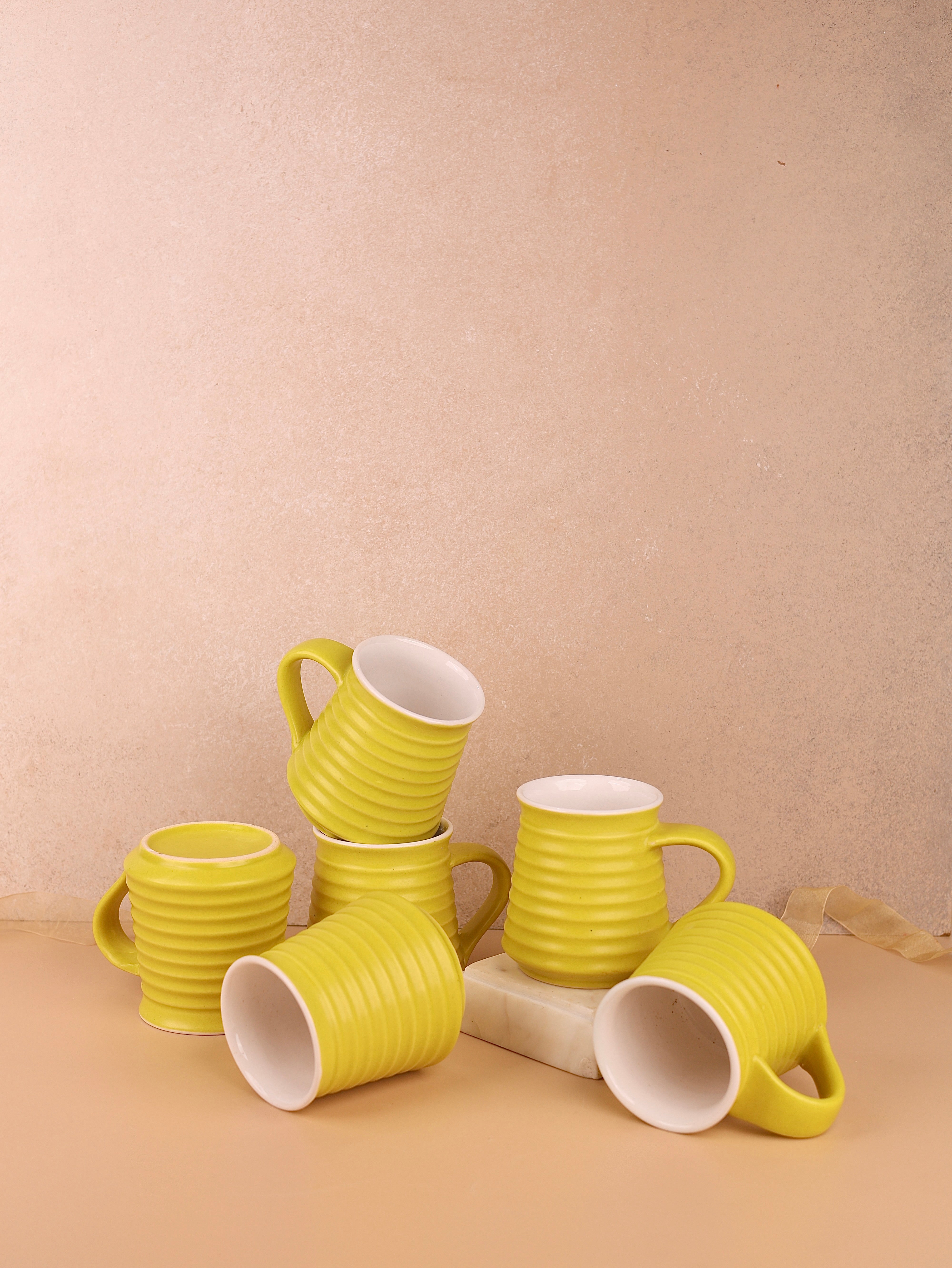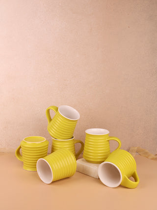 Sip your favorite coffee or tea in style with these handcrafted ceramic mugs in a cheerful bright-yellow hue. Designed with a textured ripple pattern and a crisp white interior, they offer both elegance and comfort in every sip. Perfect for cozy mornings, evening chai sessions, and thoughtful gifting!