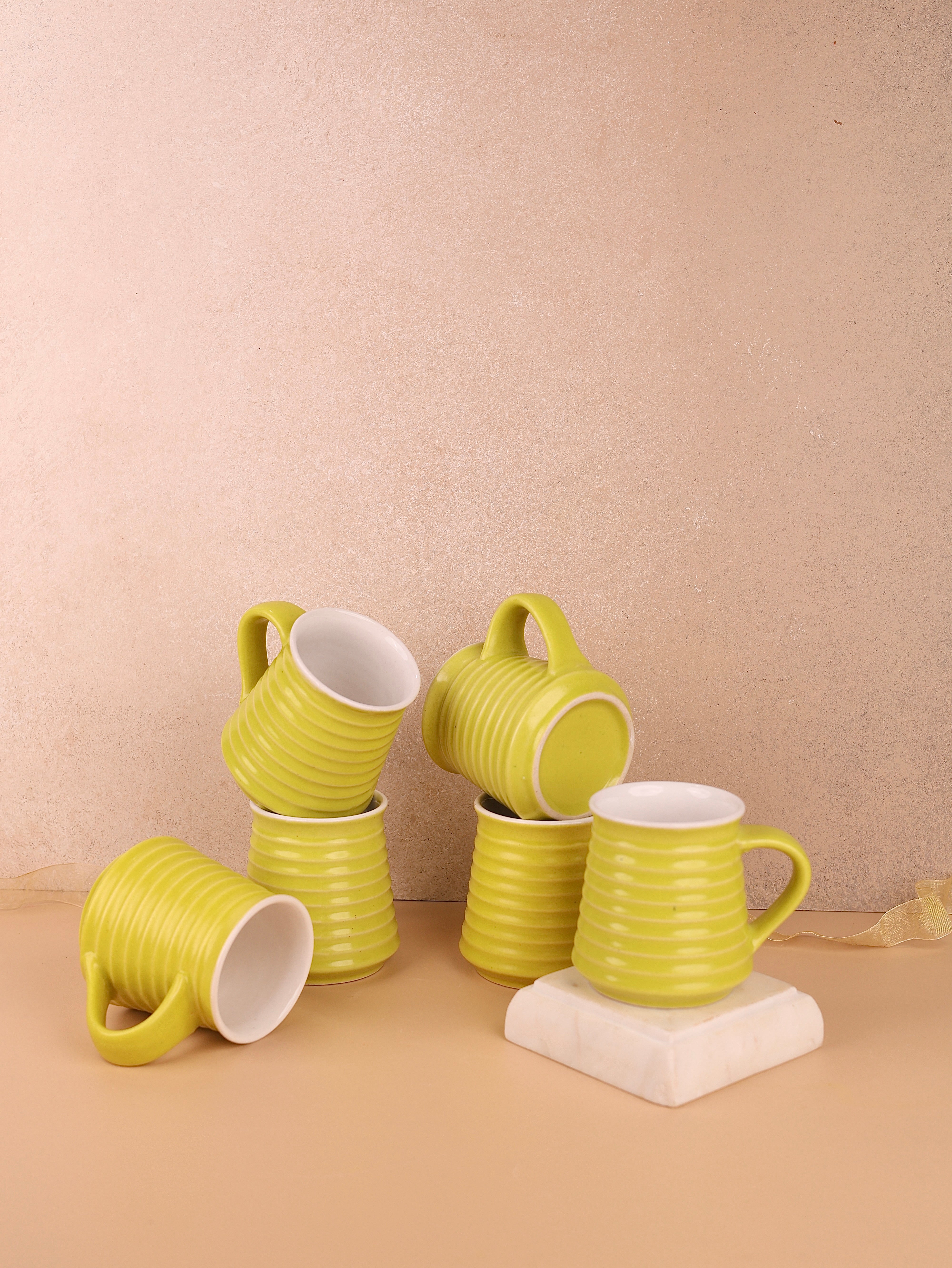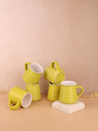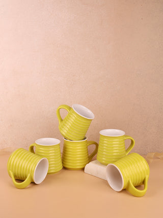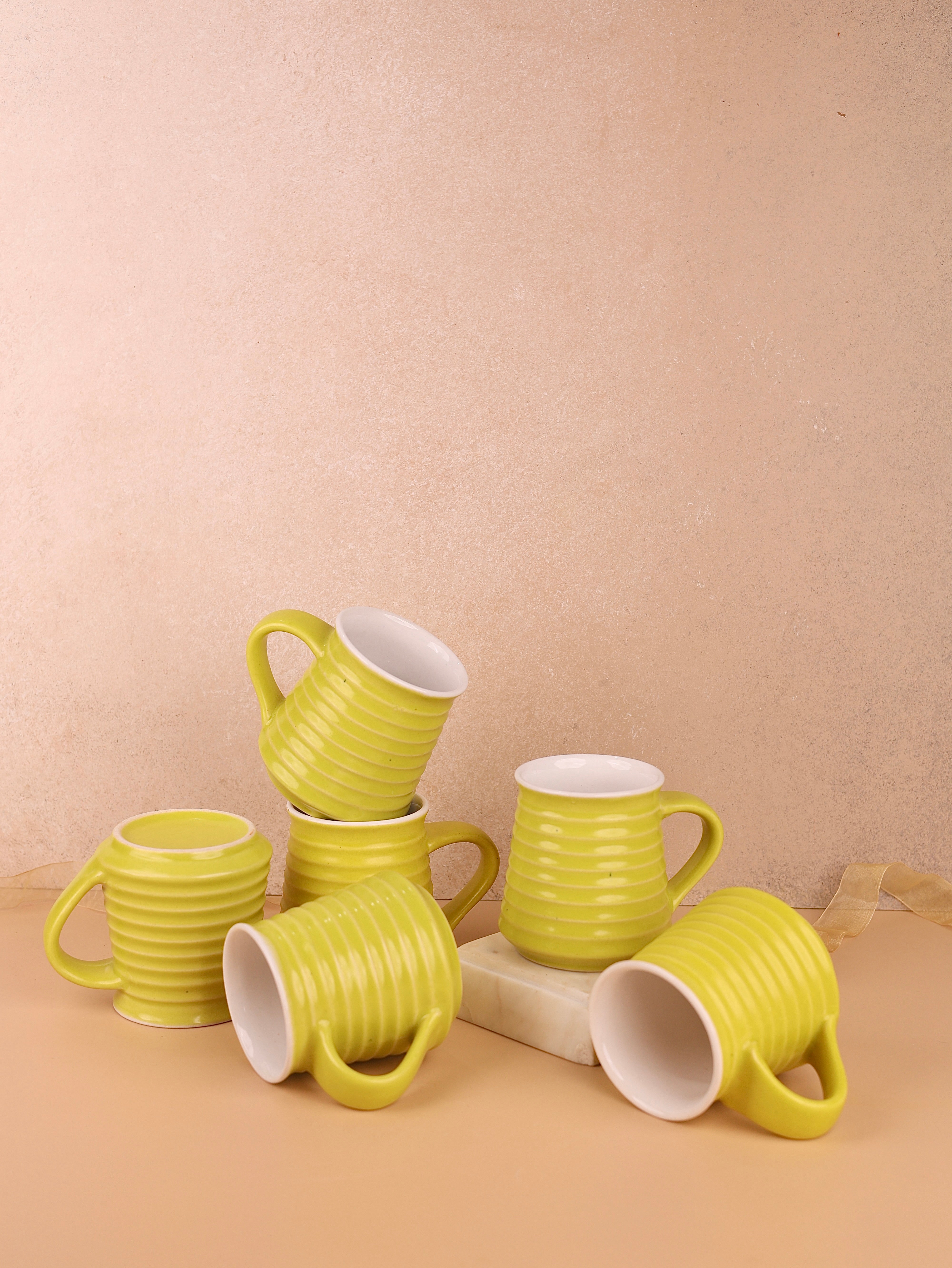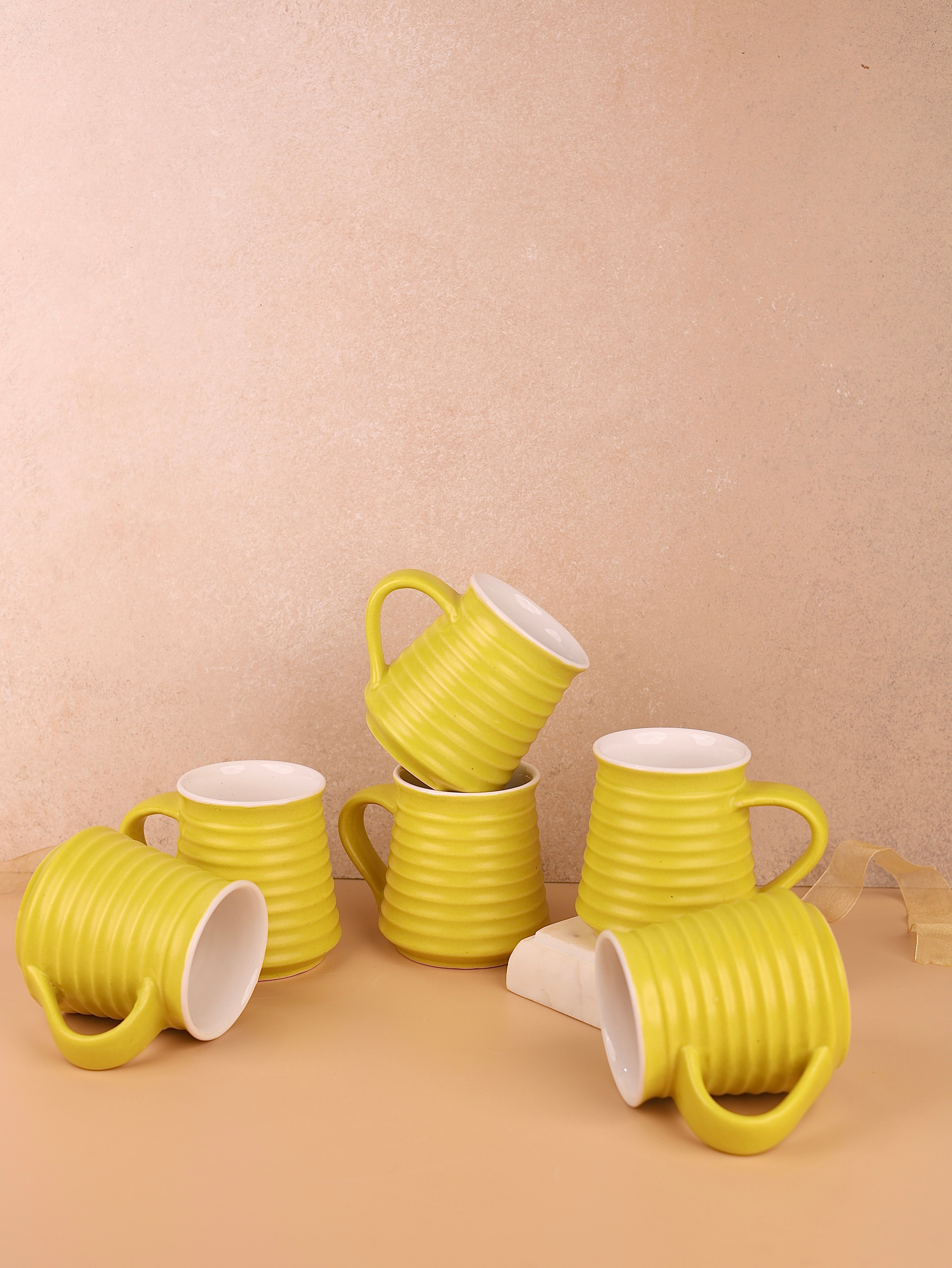 Sip your favorite coffee or tea in style with these handcrafted ceramic mugs in a cheerful bright-yellow hue. Designed with a textured ripple pattern and a crisp white interior, they offer both elegance and comfort in every sip. Perfect for cozy mornings, evening chai sessions, and thoughtful gifting!