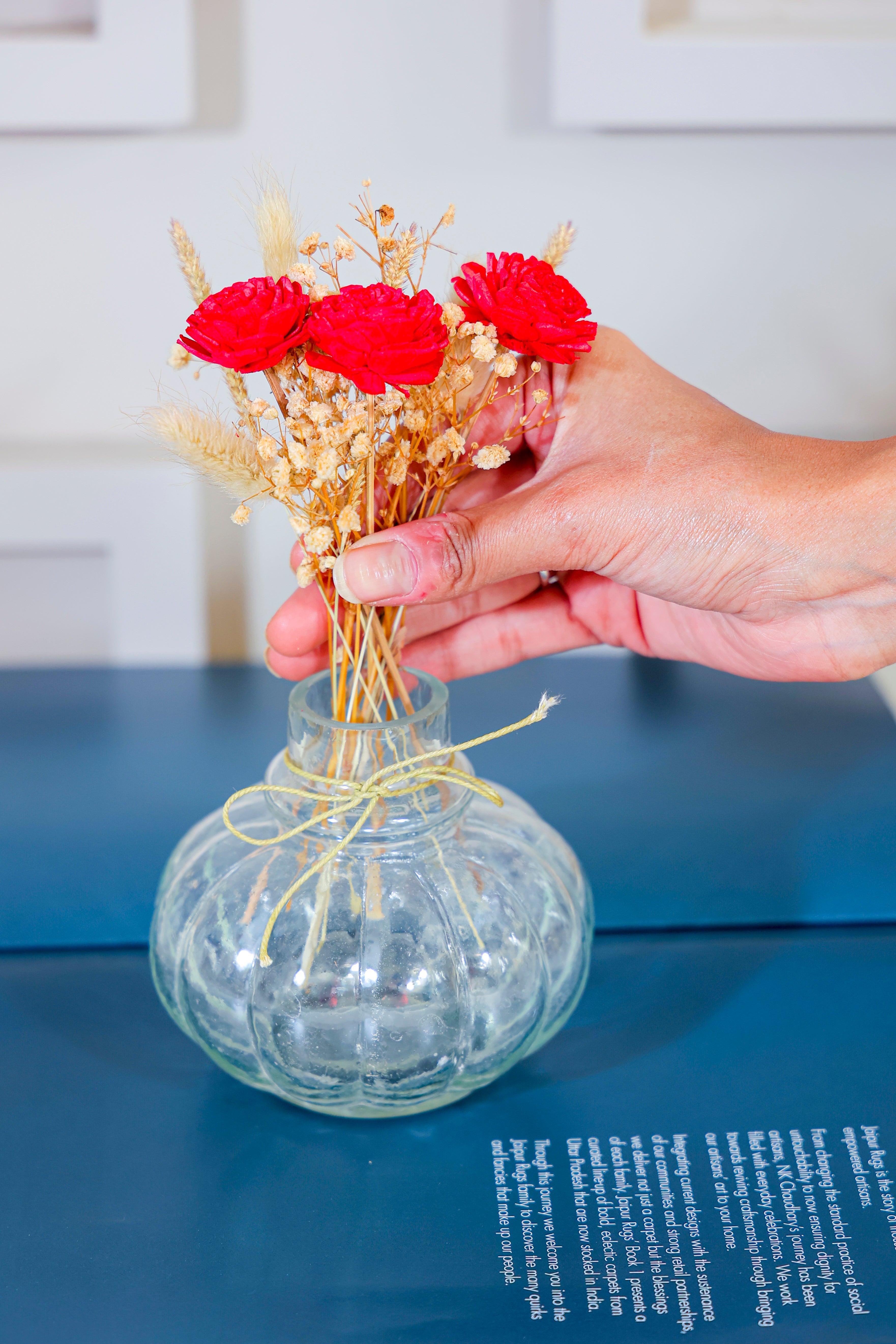 Handmade unique vases with Dried flower bunch that goes well for an a year and so give the look of natural flower without even being in the hassle of changing it everyday. These beautiful and elegant piece got your area covered with no additional sourcing